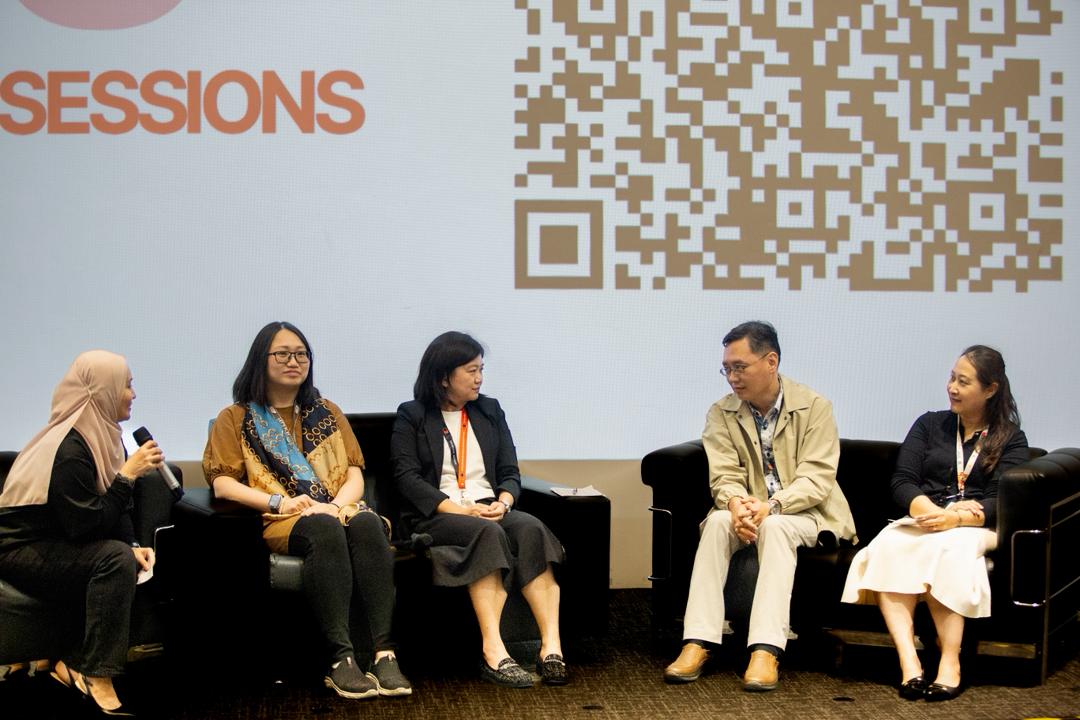 Ms. Norizan Tan (far left) in conversation with Heads of School (from left) Miko Chang May Lee, Chew Jiuan Jing, Fung Chorng Yuan, and Rosedelina Mustafa