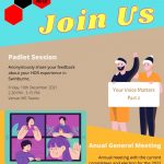 The interactive forum in Part 2 aimed to provide a platform for students to anonymously post their feedback on what they liked about their HDR program, and what they wished could be improved on their program. This event was held in a hybrid format (physical + virtual). During the event, the result from the survey in Part 1 was shared to the participants. After that, the main Padlet discussion was conducted for 15 minutes, where topics of interest from the Survey were brought forward for discussion, and new feedback was posted and discussed by the students. At the end of the session, a Shopee e-voucher lucky draw was held before officially concluding the event.